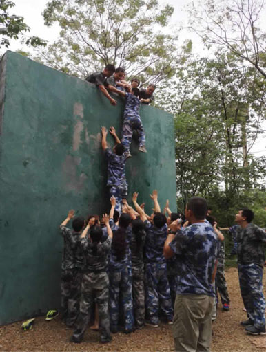 本次拓展訓(xùn)練圍繞“挑戰(zhàn)自我、熔煉團隊”的主題進行,旨在培養(yǎng)員工的團隊合作精神;培養(yǎng)主動溝通、主動配合的工作方式;增強團隊的凝聚力與向心力;提高自我的控制能力,從容應(yīng)對壓力與挑戰(zhàn);完善人格,磨練個人意志。訓(xùn)練共分為9個項目,依次是:破冰起航、彩彈CS對抗、無敵風(fēng)火輪、挑戰(zhàn)150、狀元路、高空挑戰(zhàn)、智力腳步、鼓舞飛揚 、畢業(yè)墻。